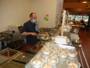 Und dann, dann, dann übernahm er Anfang 1992 die Mensa des Schulzentrums Süd, wo der Verkauf erst mal noch ganz primitiv vor sich ging, denn fertig wurde die neue Mensa erst nach den Osterferien 1992. Deswegen entstanden die beiden Fotos des jungen jetzt selbständigen „Unternehmers“ auch draußen, weil drinnen in der Mensa noch Bauarbeiter werkelten. Angefangen wurde dann mit nur einem Essen täglich und ca. 175 Portionen. Dieses hat sich in den 30 Jahren bis heute auf drei Essen zur Auswahl täglich und ca. 700 Portionen, nicht mehr nur in der Mensa, sondern auch für die umliegenden Schulen, erweitert.